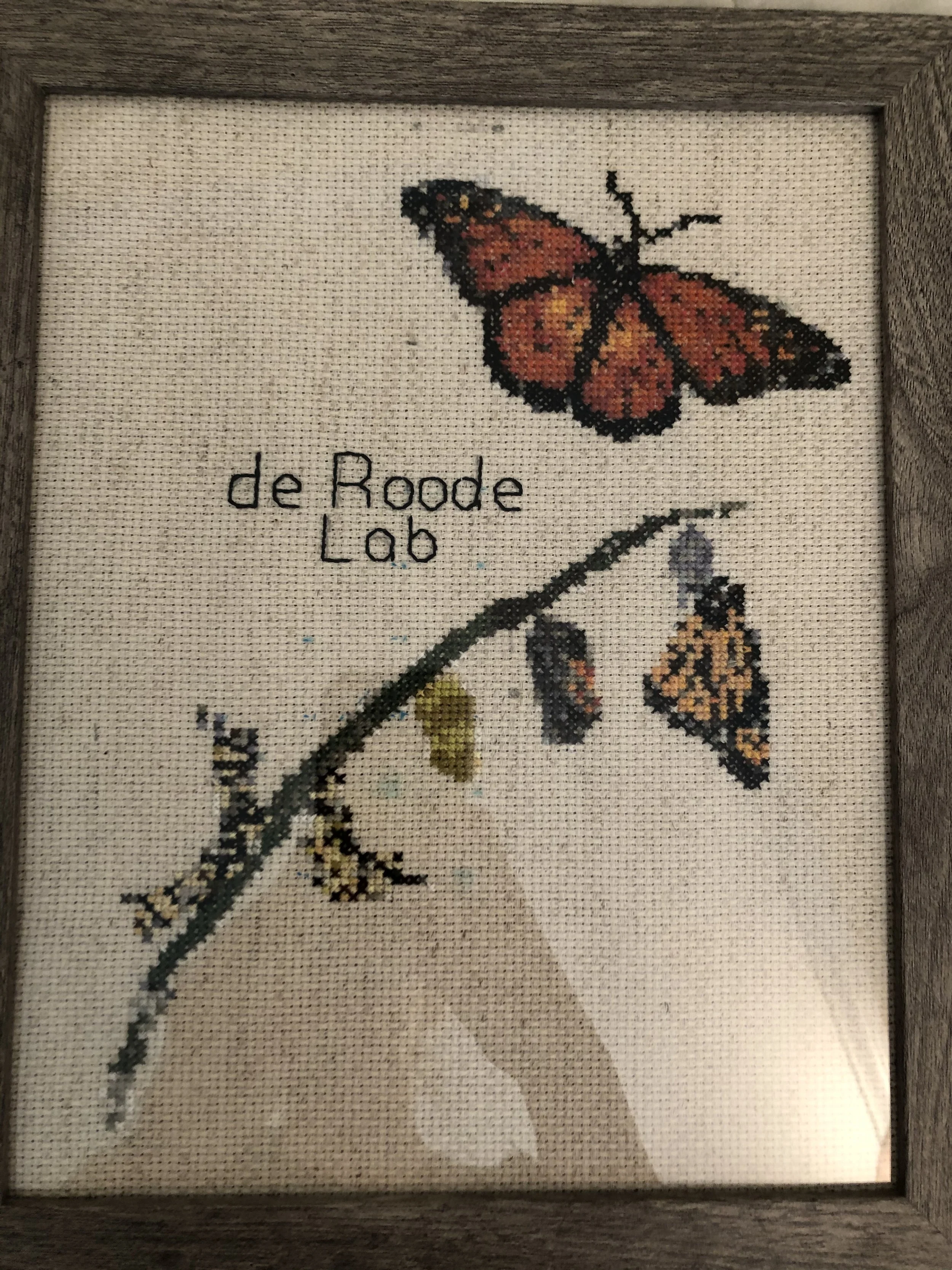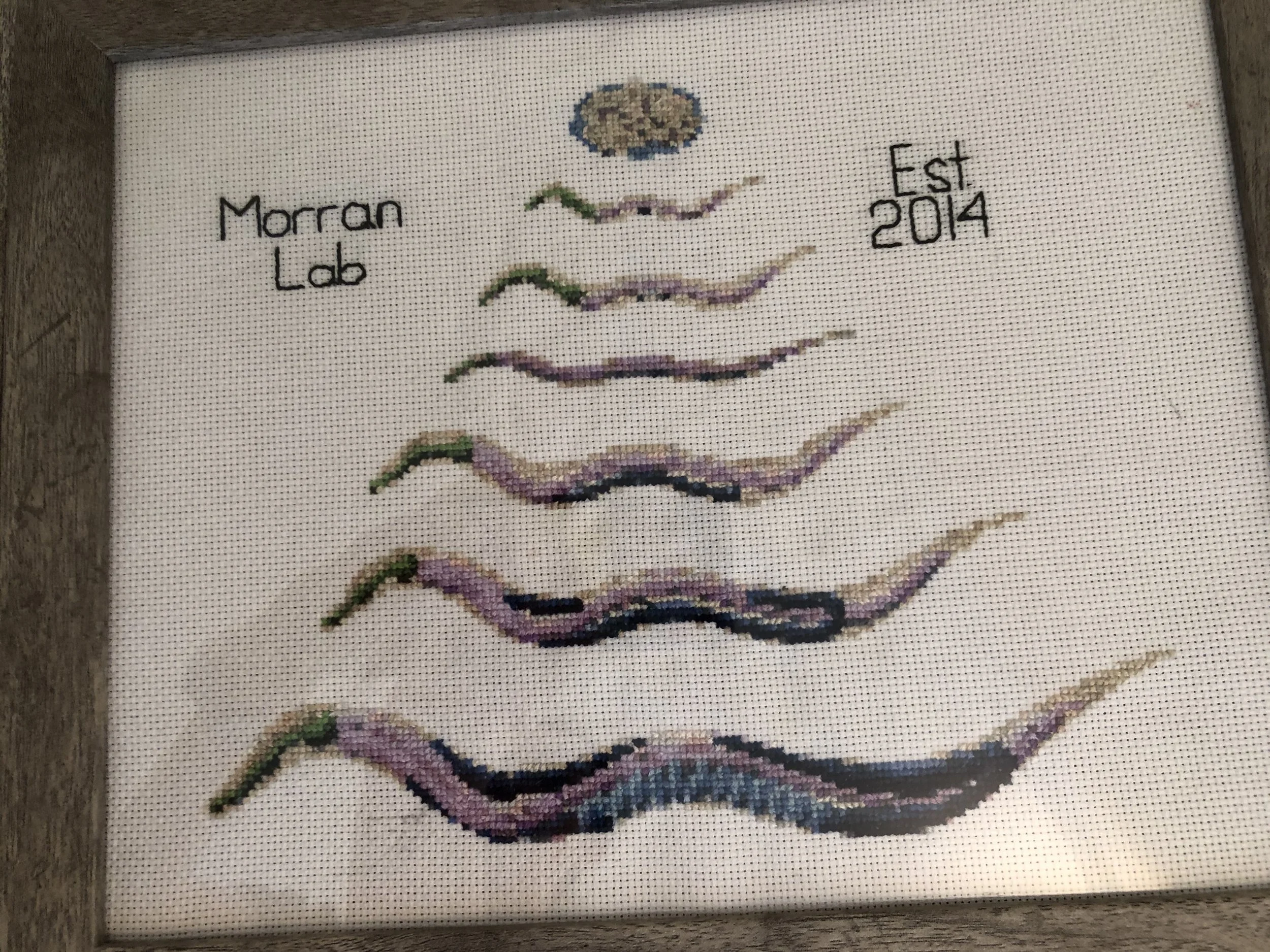 My first foray into cross-stitching began with gifts to my graduate school advisors: one who studies monarch butterflies, the other the ubiquitous nematode Caenorhabditis elegans.