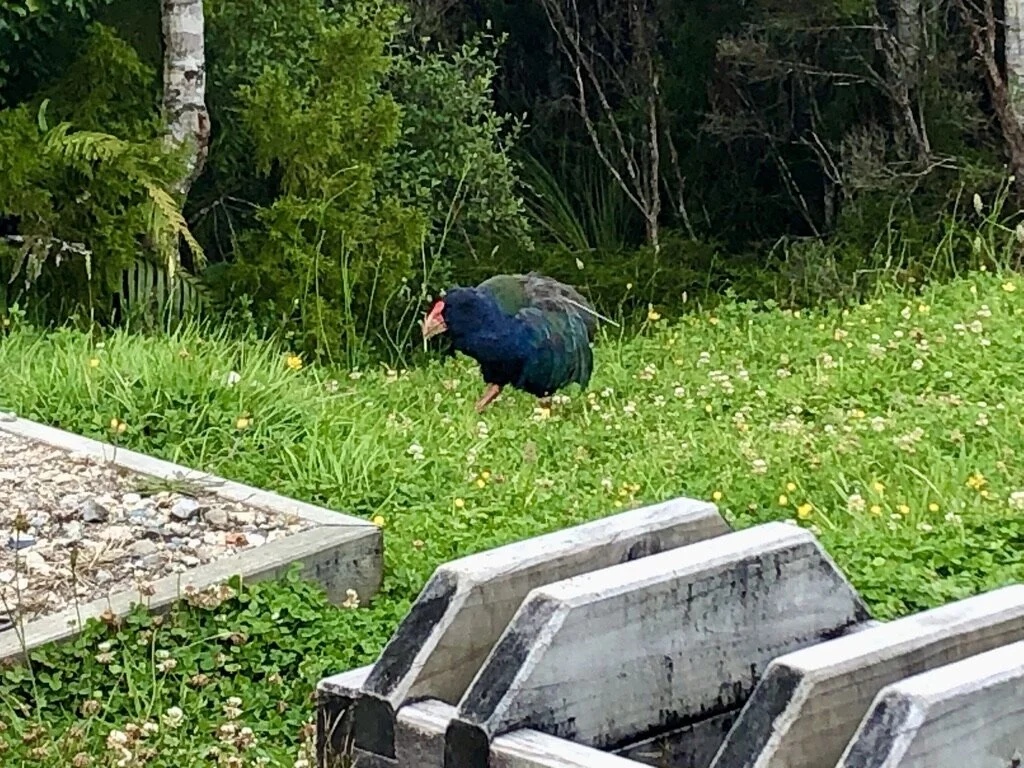 Okay SO. This bird is exciting. It is called a takahē (Porphyrio hochstetteri) and looks sort of like a very large colorful chicken with a bright red beak (this was as close as I could get to one, so the image quality isn’t great). They are flightless birds, so once again, have little precaution against humans or human-introduced predators. In the late 1800s the “last” one was caught. They were presumed to be extinct for 50 YEARS until in 1948, a local man out for a tramp (see definition in previous post) stumbled upon one in the wild. Can you imagine being that dude? It would be like seeing a unicorn. After its rediscovery (future searchers found 2 birds), the part of Fiordland park in which they were found was closed off to people in order for the takahē numbers to rebound. Unfortunately, by the 1980s, their numbers were still only a little over 100. The DoC intervened with targeted breeding programs (located at Te Anua, which I will be visiting next week!) and the population has now increased to about 400 individuals. In 2018, 30 adult takahēs were introduced near the Heaphy Track in Kahurangi National Park (specifically Gouland Downs, where this photo was taken). This past week, on the track itself, I saw 5 of them!!! That’s 1/6 of the whole population!! This is the first wild population outside the remote Fiordland Murchison Mountains where they were originally rediscovered. All 30 birds are closely monitored and only one has died of natural causes. Next step will be to see how the breeding and survival rate of chicks goes! If it is successful, it will be major.